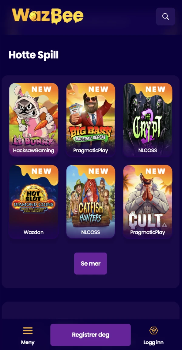 Mobilplattformen vÄr er bygget som en komplett casinoopplevelse, ikke en begrenset versjon. Med Wazbee Casino kan du bla i et bibliotek pÄ rundt 8 000 spill, inkludert spilleautomater, live dealer-titler og klassiske bordspill, alt optimalisert for mindre skjermer. Vi holder kontoen din synkronisert pÄ tvers av enheter, slik at du kan starte en Þkt pÄ mobil og fortsette senere pÄ desktop uten Ä miste oversikten over saldo eller bonuser.